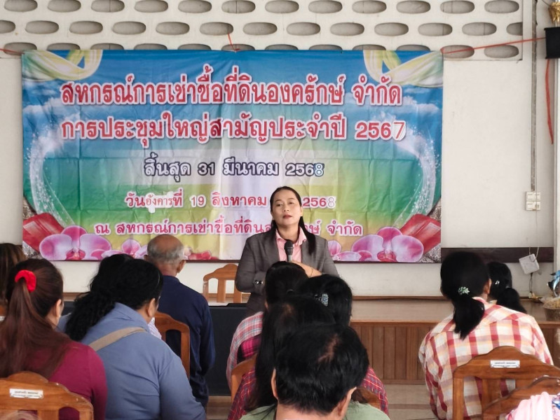 วันอังคารที่ 19 สิงหาคม 2568 เวลา 09.00 น. นางสาวภัทรภร ศิริมงคล ผู้อำนวยการศูนย์ถ่ายทอดเทคโนโลยีการสหกรณ์ที่ 4 เข้าร่วมประชุมใหญ่สามัญประจำปี สิ้นสุดบัญชี 31 มีนาคม 2568 สหกรณ์การเช่าซื้อที่ดินองครักษ์ จำกัด โดยมี นางสาวสอาดจิต ประสงค์สิน สหกรณ์จังหวัดนครนายก เป็นประธานในพิธีเปิดฯ ณ วัดอารีราษฎร์ คลอง 23 ตำบลศีรษะกระบือ อำเภอองครักษ์ จังหวัดนครนายก