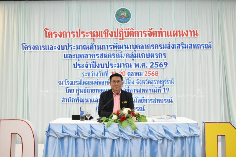 วันที่ 19 ตุลาคม 2568 เวลา 08.30 น. นางสาวภัทรภร ศิริมงคล ผู้อำนวยการศูนย์ถ่ายทอดเทคโนโลยีการสหกรณ์ที่ 4 พร้อมด้วย นางสาวอัจยุดา เสียงเพราะ ตำแหน่ง นักทรัพยากรบุคคลชำนาญการพิเศษ เข้าร่วมโครงการประชุมเชิงปฏิบัติการจัดทำแผนงานโครงการและงบประมาณด้านการพัฒนาบุคลากรกรมส่งเสริมสหกรณ์และบุคลากรสหกรณ์/กลุ่มเกษตรกร ประจำปีงบประมาณ พ.ศ.2569 ระหว่างวันที่ 19-20 ตุลาคม 2568 ณ โรงแรมไดมอนด์ พลาซ่า อำเภอเมืองจังหวัดสุราษฎร์ธานี โดยมี นายพิษณุ พินรอด ผู้อำนวยการสำนักพัฒนาและถ่ายทอดเทคโนโลยีการสหกรณ์ เป็นประธานในการประชุม