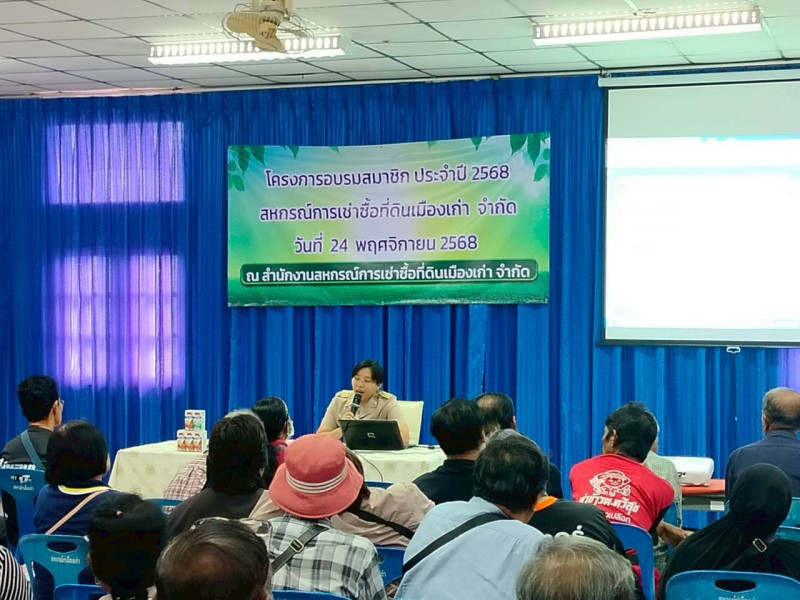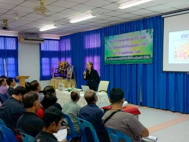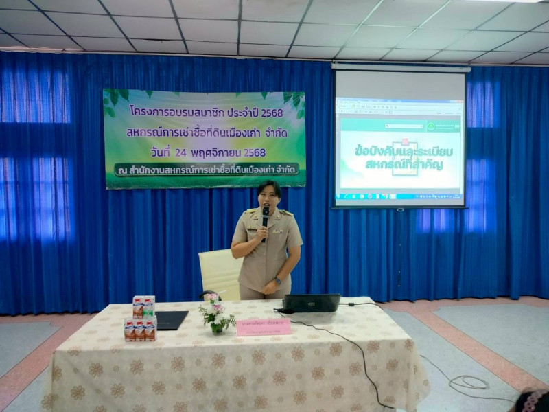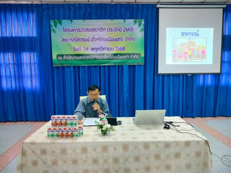 วันจันทร์ที่ 24 พฤศจิกายน 2568 เวลา 08.30 น. นางสาวภัทรภร ศิริมงคล ผู้อำนวยการศูนย์ถ่ายทอดเทคโนโลยีการสหกรณ์ที่ 4 มอบหมายให้นางสาวอัจยุดา เสียงเพราะ นักทรัพยากรบุคคลชำนาญการพิเศษ บรรยายให้ความรู้เรื่องอุดมการณ์ หลักการ วิธีการสหกรณ์ และคุณค่าของสหกรณ์ให้กับสมาชิกสหกรณ์การเช่าซื้อที่ดินเมืองเก่า จำกัด เพื่อให้สมาชิกได้รับความรู้ความเข้าใจบทบาทหน้าที่ และความรับผิดชอบในฐานะสมาชิกที่มีต่อสหกรณ์ ให้สมาชิกได้รับทราบถึงข้อบังคับและระเบียบของสหกรณ์ ตลอดจนการทำธุรกิจต่าง ๆ ของสหกรณ์ ณ สหกรณ์การเช่าซื้อที่ดินเมืองเก่า จำกัด