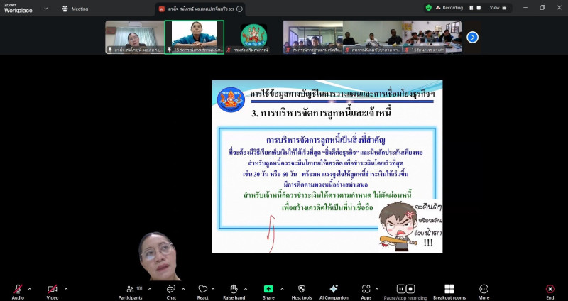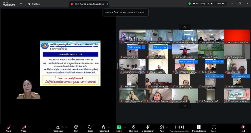 วันอังคารที่ 23 ธันวาคม 2568 นางสาวภัทรภร ศิริมงคล ผู้อำนวยการศูนย์ถ่ายทอดเทคโนโลยีการสหกรณ์ที่ 4 พร้อมด้วยบุคลากรศูนย์ฯ 4 ดำเนินการจัดโครงการฝึกอบรมประจำปีงบประมาณ พ.ศ. 2569 โครงการฝึกอบรม "พัฒนาศักยภาพกรรมการใหม่" (ออนไลน์) ผ่านระบบ Zoom Meeting รุ่นที่ 1 ระหว่างวันที่ 22-23 ธันวาคม 2568 และได้รับเกียรติจาก อาจารย์บรรจบ สงฤทธิ์ อดีตผู้อำนวยการกลุ่มจัดตั้งและส่งเสริมสหกรณ์สำนักงานสหกรณ์จังหวัดปทุมธานี บรรยายให้ความรู้หัวข้อกฏหมาย ข้อบังคับและระเบียบสหกรณ์ที่คณะกรรมการต้องรู้ และนางดวงใจ สมโภชน์ ผู้อำนวยการสำนักงานตรวจบัญชีสหกรณ์ปราจีนบุรี บรรยายให้ความรู้หัวข้อ การใช้งบการเงินเพื่อการบริหารและวางแผนพัฒนาสหกรณ์ กลุ่มเป้าหมายประกอบด้วย กรรมการดำเนินการสหกรณ์ ที่เข้าดำรงตำแหน่งใหม่หรือกรรมการดำเนินการสหกรณ์ที่ยังไม่เคยผ่านการอบรม หรือผู้ที่เตรียมเป็นกรรมการสหกรณ์ ในพื้นที่รับผิดชอบของศูนย์ฯ 1,2,4,13และ 15 รวมทั้งสิ้นจำนวน 401 คน