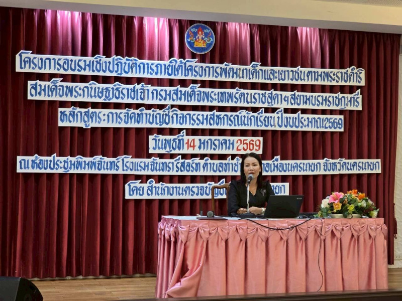 วันพุธที่ 14 มกราคม 2569 เวลา 08.30 น. นางสาวภัทรภร ศิริมงคล ผู้อำนวยการ ศูนย์ถ่ายทอดเทคโนโลยีการสหกรณ์ที่ 4 มอบหมายให้นางสาวอัจยุดา เสียงเพราะ นักทรัพยากรบุคคลชำนาญการพิเศษ ร่วมพิธีเปิดโครงการอบรมเชิงปฏิบัติการ หลักสูตร การจัดทำบัญชีกิจกรรมสหกรณ์นักเรียน ภายใต้โครงการพัฒนาเด็กและเยาวชน ตามพระราชดำริ สมเด็จพระกนิษฐาธิราชเจ้า กรมสมเด็จพระเทพรัตนราชสุดา ฯ สยามบรมราชกุมารี ปีงบประมาณ พ.ศ.2569 โดยมี ดร.พิชญ์ชญา มีแก้ว ผู้อำนวยการสำนักงานเขตพื้นที่การศึกษาประถมศึกษานครนายก เป็นประธานเปิดพิธีฯ ณ ห้องประชุมพิมพ์จันทร์ โรงแรมจันทรา รีสอร์ท ตำบลท่าช้าง อำเภอเมือง จังหวัดนครนายก