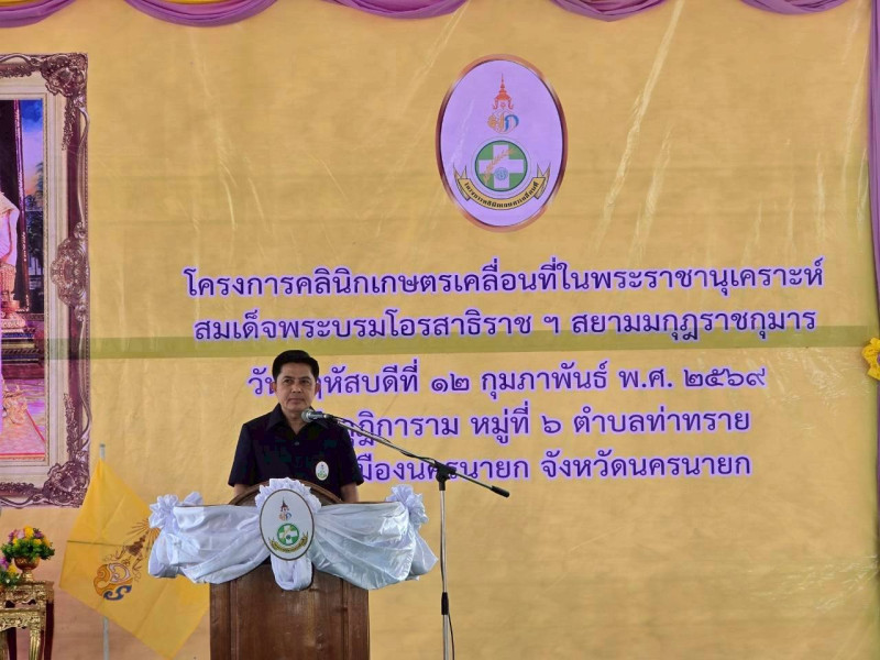 วันพฤหัสบดีที่ 12 กุมภาพันธ์ 2569 เวลา 09.00 น. นางสาวภัทรภร ศิริมงคล ผู้อำนวยการศูนย์ถ่ายทอดเทคโนโลยีการสหกรณ์ที่ 4 เข้าร่วมงานโครงการคลินิกเกษตรเคลื่อนที่ในพระราชานุเคราะห์ สมเด็จพระบรมโอรสาธิราชฯ สยามมกุฎราชกุมาร เฉลิมพระเกียรติ โดยมีนายชานน วาสิกศิริ ผู้ว่าราชการจังหวัดนครนายก เป็นประธานพิธีเปิดฯ วัตถุประสงค์ เพื่อสนองพระราชดำริและเฉลิมพระเกียรติ เนื่องในโอกาสวันเฉลิมพระชนมพรรษาพระบาทสมเด็จพระเจ้าอยู่หัว 28 กรกฎาคม 2568 เพื่อให้เกษตรกรในพื้นที่ห่างไกลสามารถเข้าถึงการบริการทางการเกษตร และได้รับการแก้ไขปัญหาด้านการเกษตรอย่างครบวงจรในคราวเดียวกัน เพื่อบูรณาการความร่วมมือระหว่างหน่วยงานวิชาการ หน่วยงานส่งเสริมและหน่วยงานอื่น ๆ ทั้งภาครัฐและภาคเอกชนในการให้บริการ และแก้ไขปัญหาทางการเกษตรร่วมกัน ณ วัดกุฏิการาม อำเภอเมืองนครนายก จังหวัดนครนายก