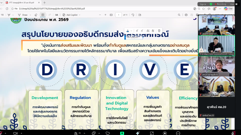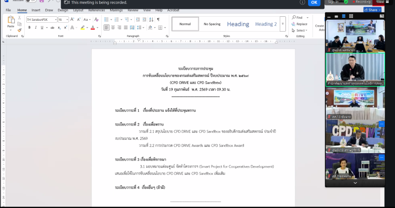 วันพฤหัสบดีที่ 19 กุมภาพันธ์ 2569 นางสาวภัทรภร ศิริมงคล ผู้อำนวยการศูนย์ถ่ายทอดเทคโนโลยีการสหกรณ์ที่ 4 พร้อมด้วยบุคลากรศูนย์ฯ4 เข้าร่วมประชุม “การขับเคลื่อนนโยบายของกรมส่งเสริมสหกรณ์ ปีงบประมาณ พ.ศ. 2569 (CPD DRIVE และ CPD Sandbox)” วัตถุประสงค์เพื่อสร้างความเข้าใจในแนวทางการดำเนินงานตามนโยบายหลักของอธิบดีกรมส่งเสริมสหกรณ์ โดยมีนายอนุรัตน์ เลื่อนลอย ผู้อำนวยการสำนักพัฒนาและถ่ายทอดเทคโนโลยีการสหกรณ์ เป็นประธานการประชุมฯ โดยประชุมผ่านระบบออนไลน์ Zoom Meeting ส่งสัญญาณจากห้องประชุม ฝ 101 อาคารฝึกอบรมส่วนกลาง สำนักพัฒนาและถ่ายทอดเทคโนโลยีการสหกรณ์