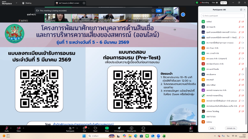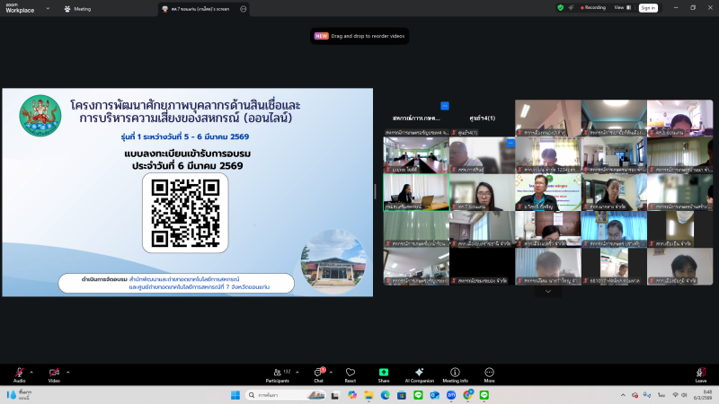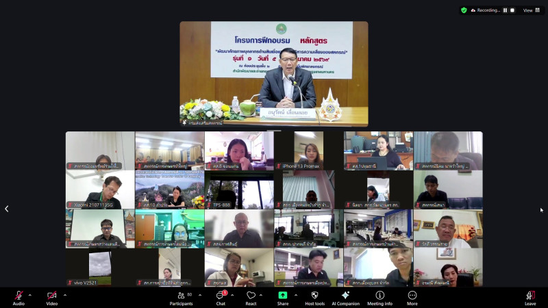 วันที่ 5-6 มีนาคม 2569 นางสาวภัทรภร ศิริมงคลผู้อำนวยการ ศูนย์ถ่ายทอดเทคโนโลยีการสหกรณ์ที่ 4 มอบหมายให้นางสาวอัจยุดา เสียงเพราะ นักทรัพยากรบุคคลชำนาญการพิเศษ เข้าร่วมจัดโครงการฝึกอบรม หลักสูตร “พัฒนาศักยภาพบุคลากรด้านสินเชื่อและการบริหารความเสี่ยงของสหกรณ์” รุ่นที่ 1 โดยมีนายอนุรัตน์ เลื่อนลอย ผู้อำนวยการสำนักพัฒนาและถ่ายทอดเทคโนโลยีการสหกรณ์ เป็นประธานเปิดโครงการฝึกอบรมฯ ผ่านระบบประชุม Zoom Meeting วัตถุประสงค์เพื่อให้ผู้เข้าอบรมมีความรู้และเข้าใจหลักการ แนวคิด และกระบวนการบริหารธุรกิจสินเชื่อสหกรณ์ภาคการเกษตรอย่างถูกต้องและ เป็นระบบ สามารถนำไปประยุกต์ใช้ในการพิจารณาและจัดการสินเชื่อได้อย่างเหมาะสมกับบริบทของสมาชิกเกษตรกร ผู้เข้าอบรมประกอบด้วย ผู้จัดการ เจ้าหน้าที่สินเชื่อ คณะกรรมการเงินกู้ หรือผู้ทำหน้าที่ด้านสินเชื่อในพื้นที่รับผิดชอบของศูนย์ถ่ายทอดเทคโนโลยีการสหกรณ์ที่ 1 - 8 รวมจำนวน 325 คน