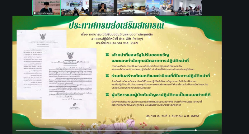 วันพุธที่ 18 มีนาคม 2569 นางสาวภัทรภร ศิริมงคล ผู้อำนวยการศูนย์ถ่ายทอดเทคโนโลยีการสหกรณ์ที่ 4 มอบหมายให้ นางสาวอัจยุดา เสียงเพราะ นักทรัพยากรบุคคลชำนาญการพิเศษ พร้อมด้วยบุคลากรศูนย์ฯ 4 เข้าร่วมรับฟังโครงการอบรมทางไกล (Conference) เรื่อง "การป้องกันผลประโยชน์ทับซ้อน" เพื่อให้ความรู้ ความเข้าใจ และสร้างความตระหนักค่านิยม จิตสำนึก และเสริมสร้างจริยธรรมแก่ข้าราชการ ลูกจ้างประจำ และพนักงานราชการ ทั้งส่วนกลางและส่วนภูมิภาค โดยมีนายนิรันดร์ มูลธิดา อธิบดีกรมส่งเสริมสหกรณ์ เป็นประธานในพิธีเปิดฯ ผ่านระบบ Zoom Meeting